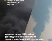 Уражено склад МТЗ, район зосередження живої сили та пункт управління БпЛА противника У ніч на 8 лютого, уражено склад матеріально-технічного забезпечення підрозділу ворога в районі тимчасово окупованоїkrnews.ua